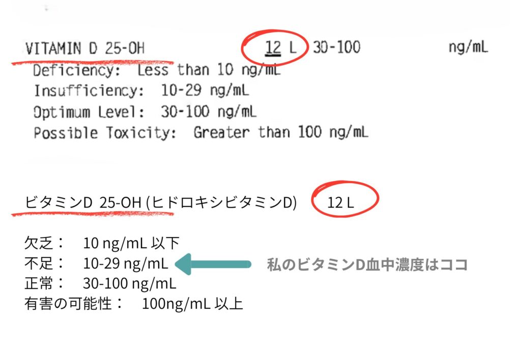 血液検査の結果を見て明らかなように、私はビタミンDが不足していました。
